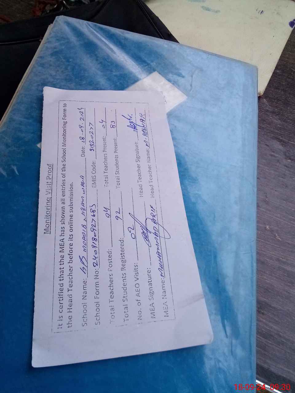 | Certified that this School was Inspected by the Undersigned MEA/DMO Today and the Information Stated Above is as Per Record. | |||||