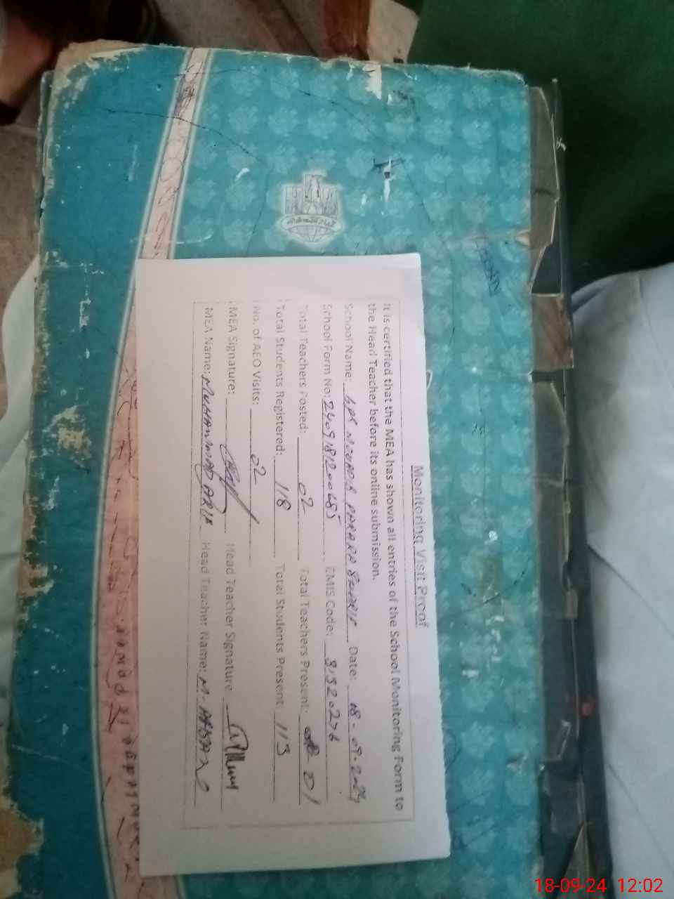 | Attendance Register | Head Teacher | MEA with School | Visit Proof |