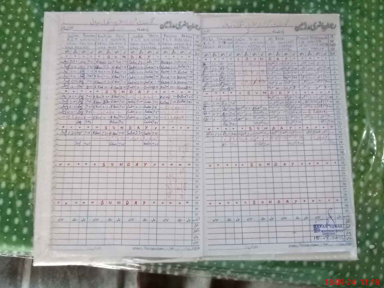 | CNIC | Full Name | Designation | R/C | Absence During Last Calender Month |