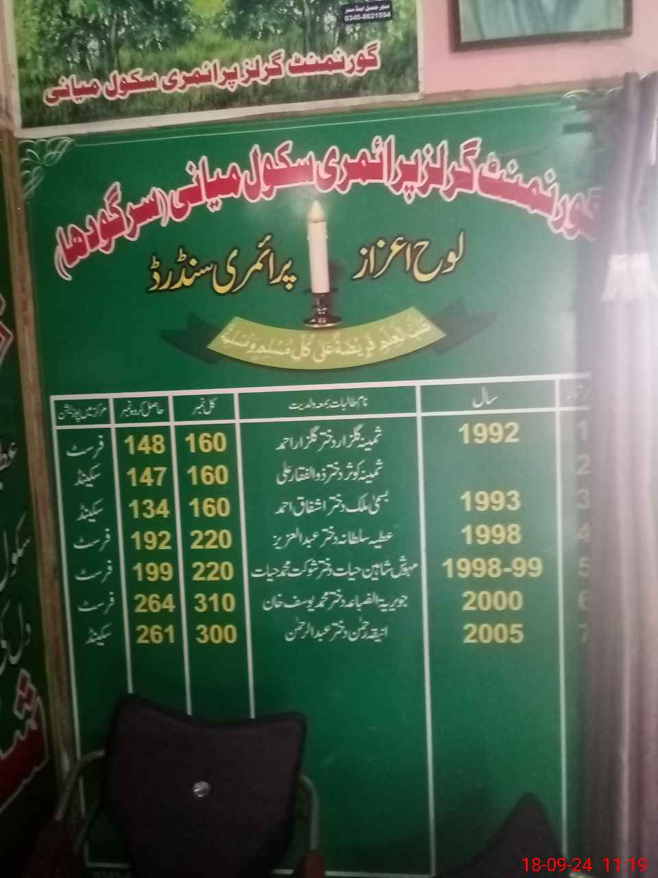 | District: SARGODHA | Tehsil: BHERA | Markaz: MIANI - FEMALE | Level: Primary | |
