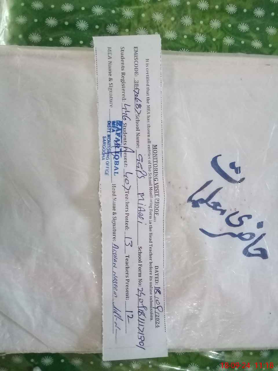 | Certified that this School was Inspected by the Undersigned MEA/DMO Today and the Information Stated Above is as Per Record. | |||||