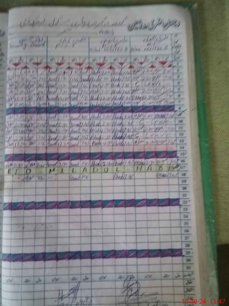 | CNIC | Full Name | Designation | R/C | Absence During Last Calender Month |