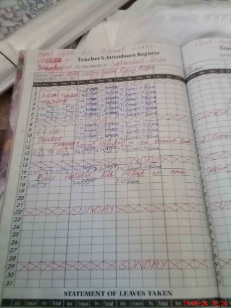 | Leave | Duty | Absent | Maternity | Medical | Ex- Pak |