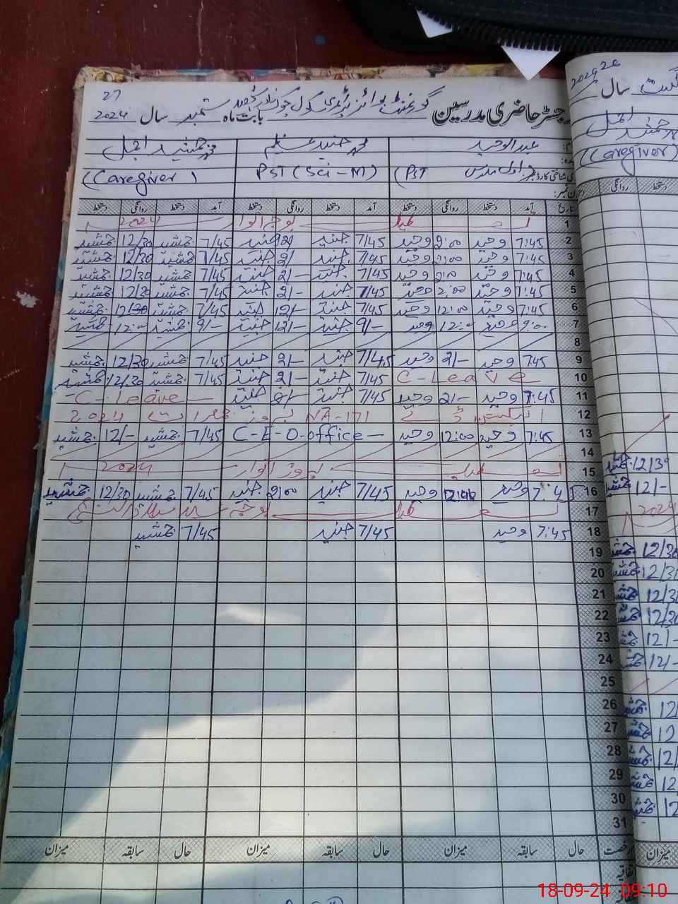 | CNIC | Full Name | Designation | R/C | Absence During Last Calender Month |