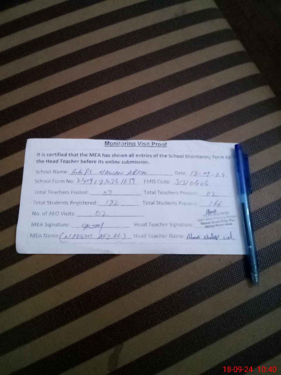 | EMIS Code: 31310404 | Name of School: GGPS NAWAN ARAIN | |||