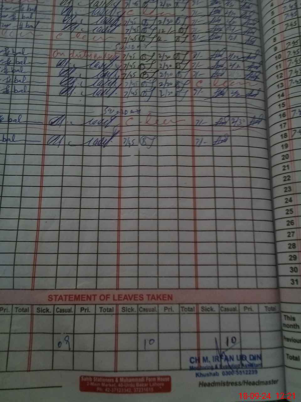 | 38**** | Ma**** Qa**** | Regular | 1 | 0 | 0 | 0 | 0 | 0 | 0 | 0 | 1 | Casual | |