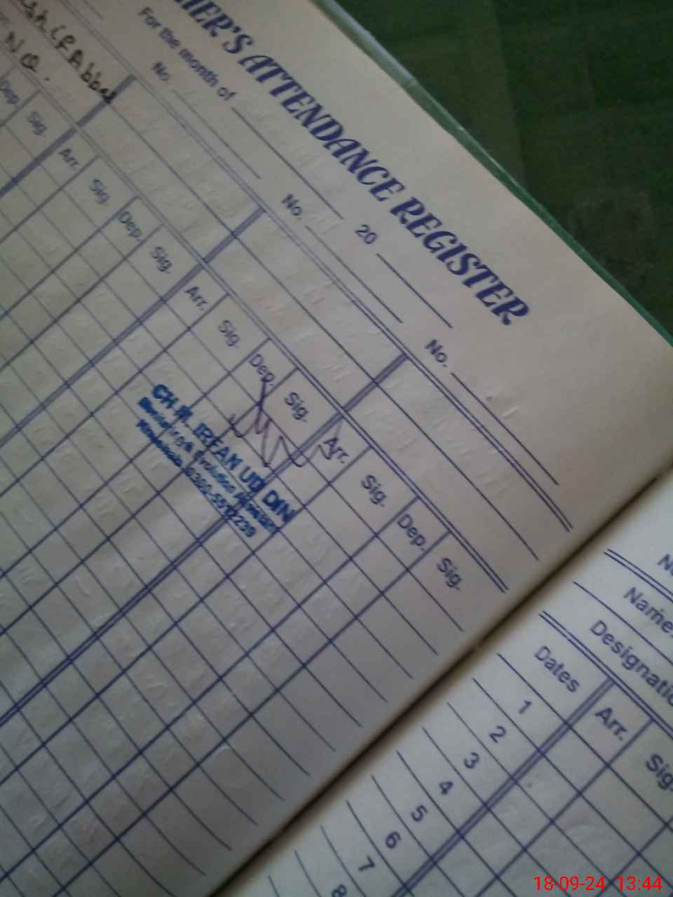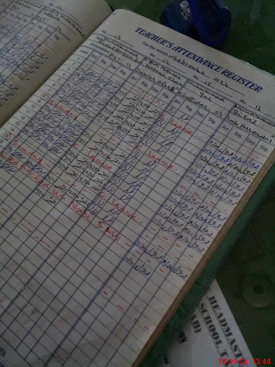 | CNIC | Full Name | Designation | R/C | Absence During Last Calender Month |