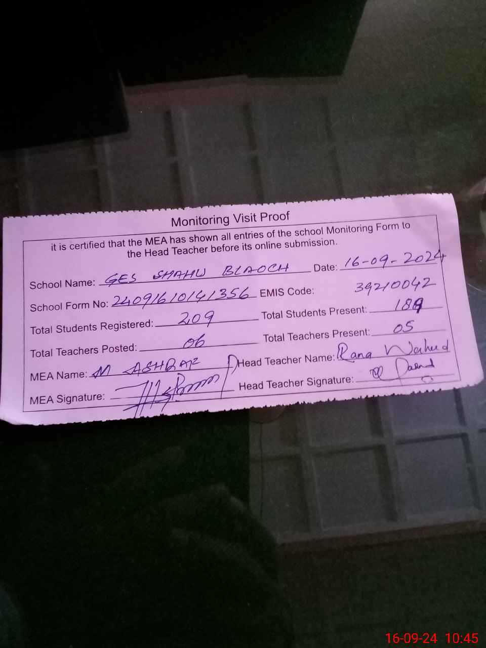 | EMIS Code: 39210042 | Name of School: GES SHAHU BALOUCH PO PAKPATTAN | |||