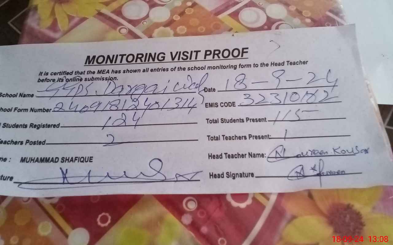 | EMIS Code: 32310162 | Name of School: GGPS DARGHAI WALA | |||