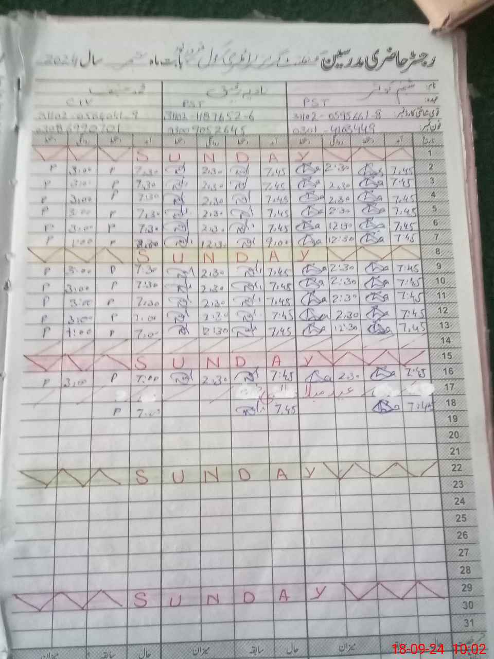 | CNIC | Full Name | Designation | R/C | Absence During Last Calender Month |
