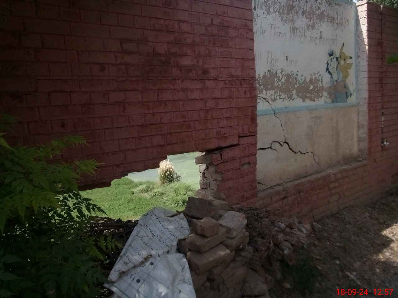 | Total no. of Classrooms: 6 No. of Classrooms Used for Teaching: 3 No. of Classrooms Storing Old Furniture, FTBs, etc: 0Comments if Any: Boundary wall of girls portion approximately 10 to 15 feet is broken |