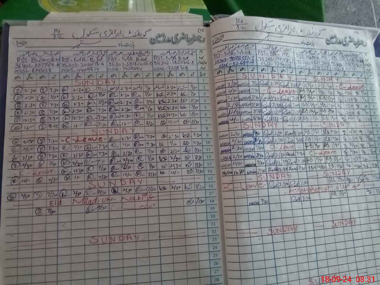 | Leave | Duty | Absent | Maternity | Medical | Ex- Pak |