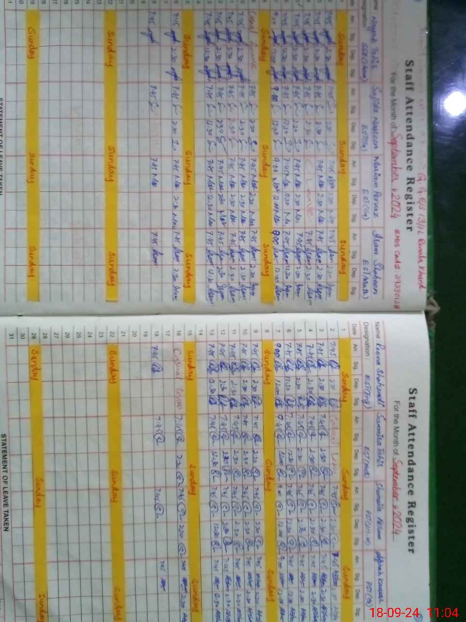 | Leave | Duty | Absent | Maternity | Medical | Ex- Pak |