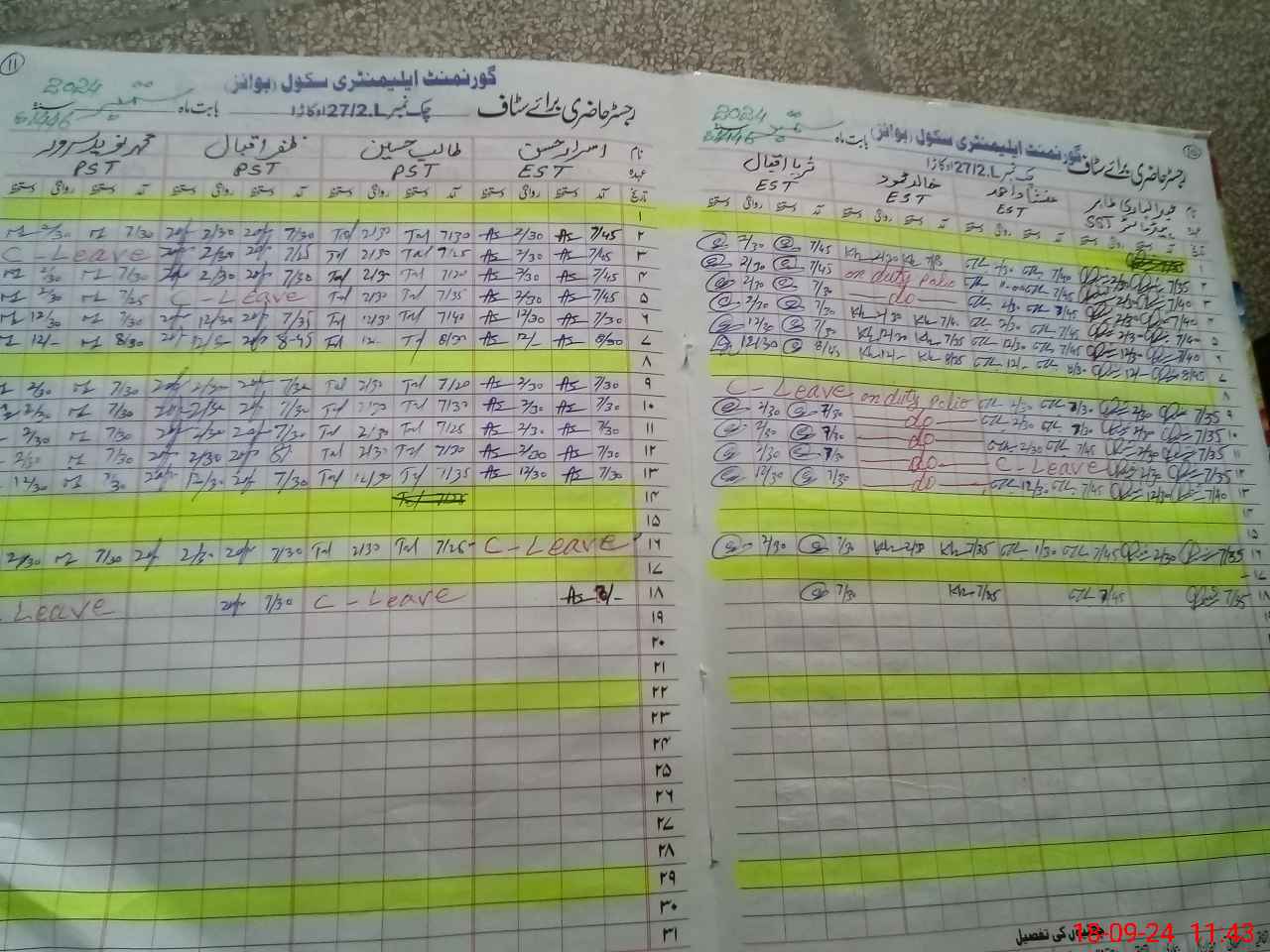 | Leave | Duty | Absent | Maternity | Medical | Ex- Pak |