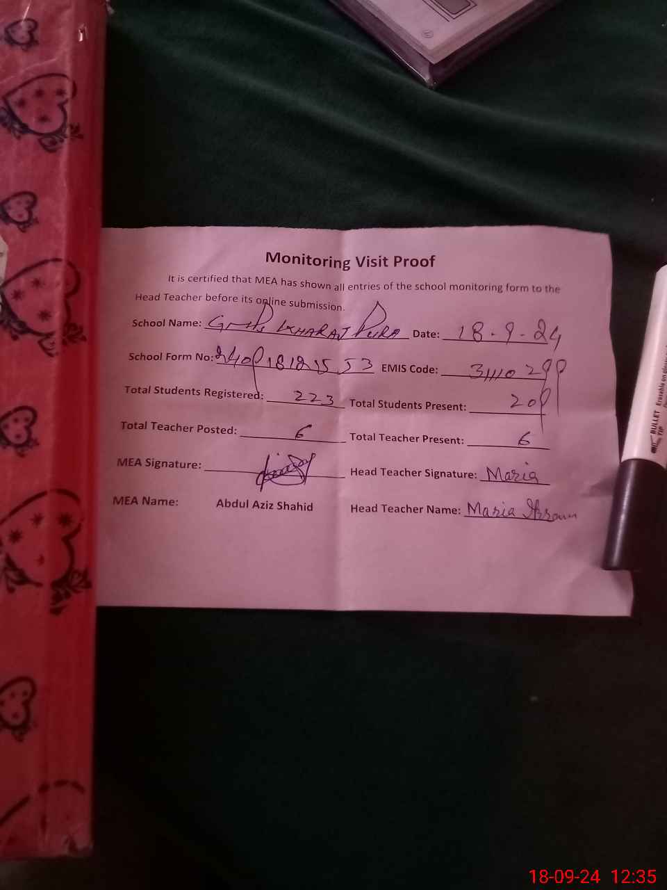 | EMIS Code: 31110299 | Name of School: GMPS KHARAJ PURA | |||