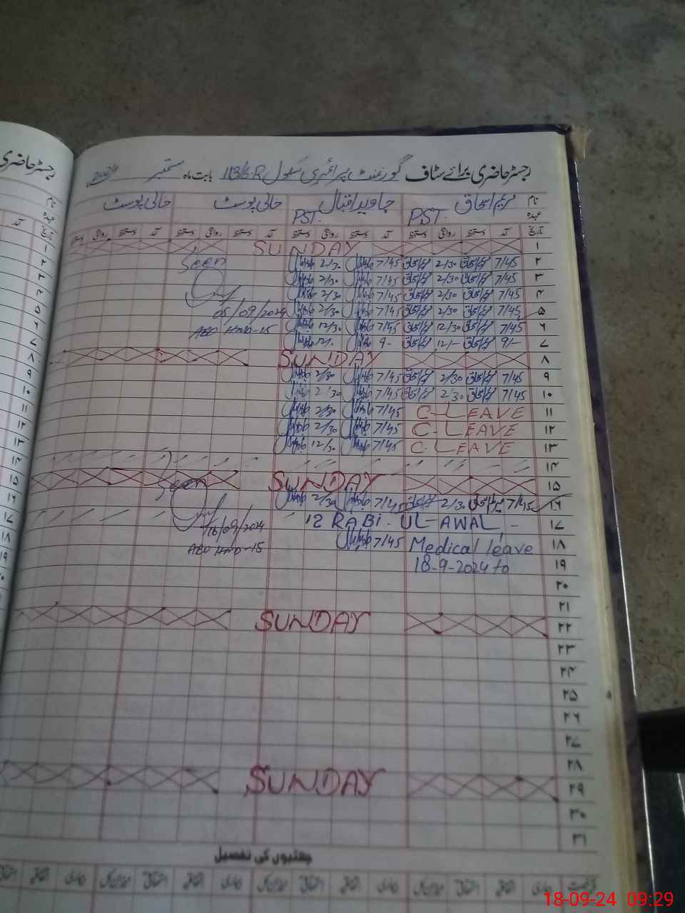 | Leave | Duty | Absent | Maternity | Medical | Ex- Pak |