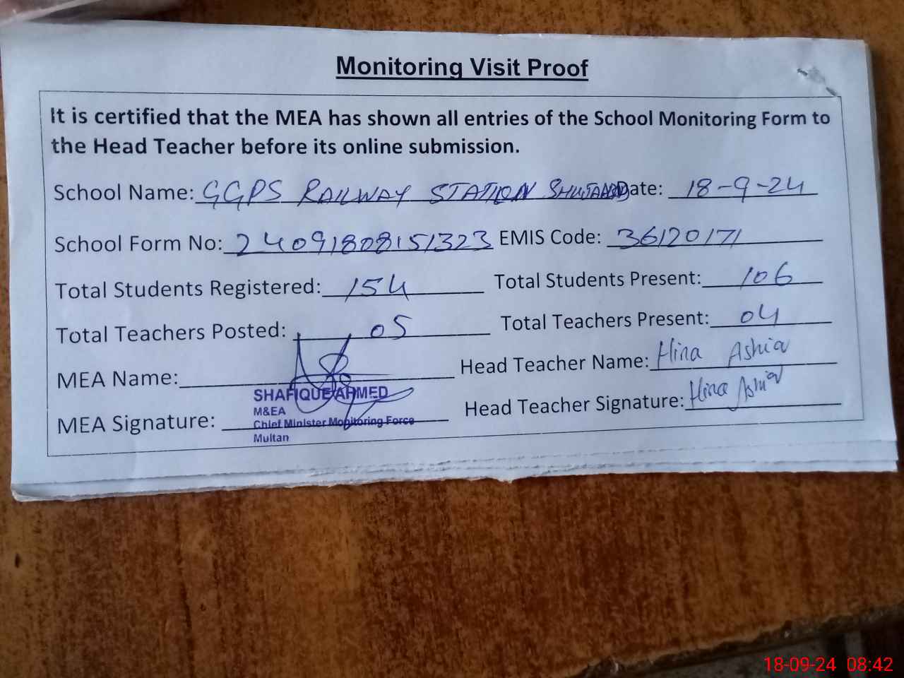 | EMIS Code: 36120171 | Name of School: GGPS RAILWAY STATION SHUJABAD | |||