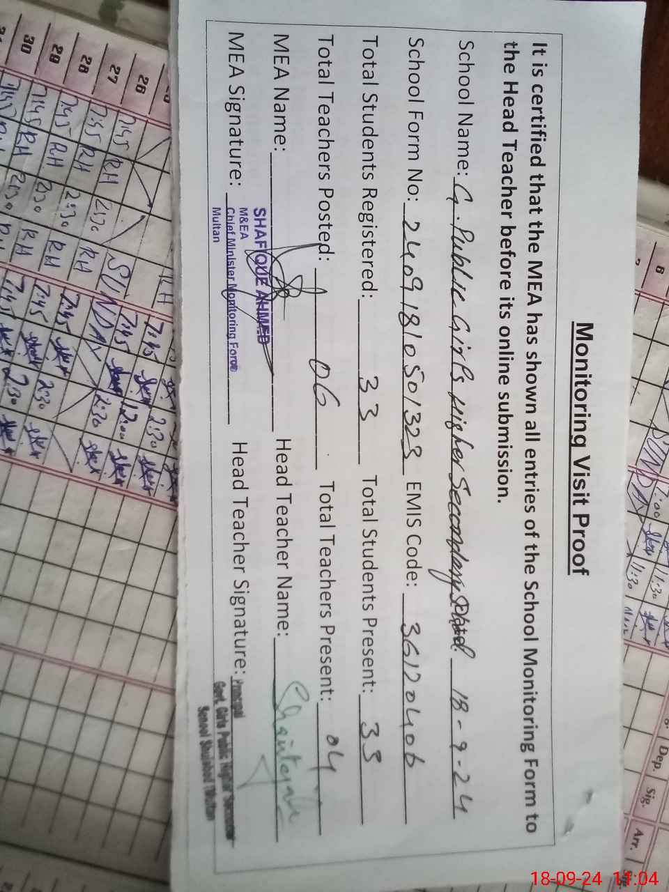 | EMIS Code: 36120406 | Name of School: Govt. Public Girls Higher Secondary School Shujabad | |||