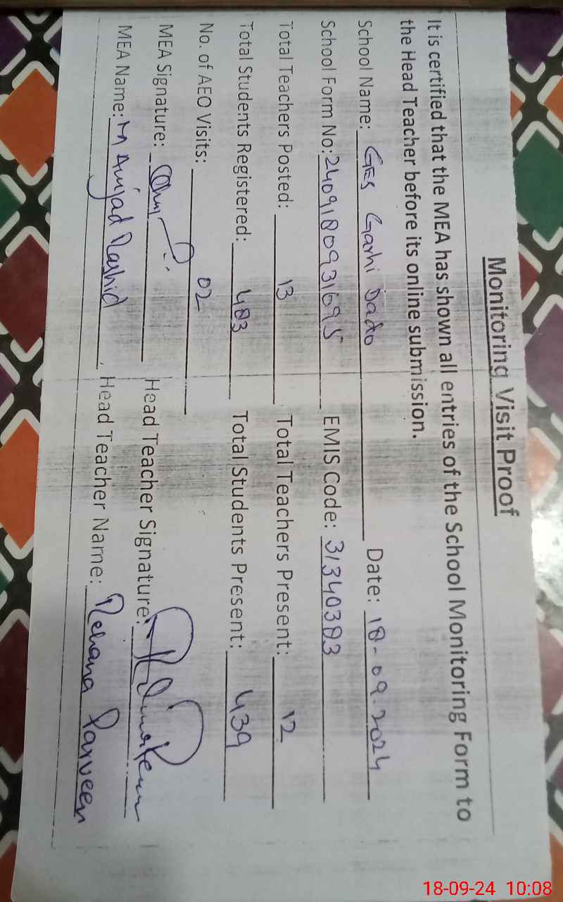 | EMIS Code: 31340383 | Name of School: GGES GHARI DADO | |||