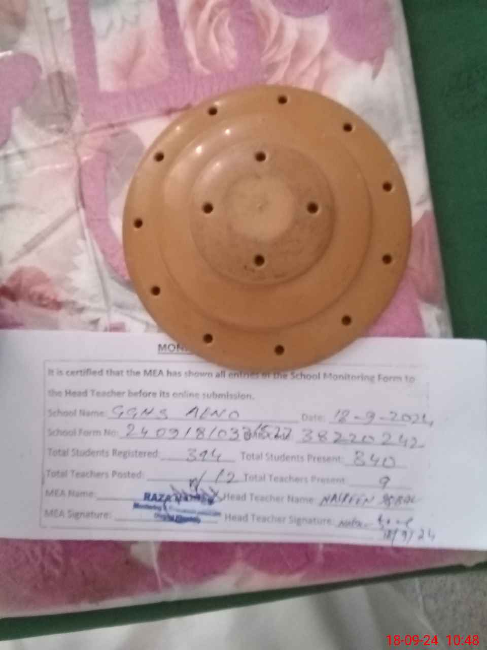 | Monitoring Date: 18-09-2024 | Start Time: 18-09-2024 10:00 AM | End Time: 18-09-2024 10:52 AM | Name of MEA: RA**** HA**** | |