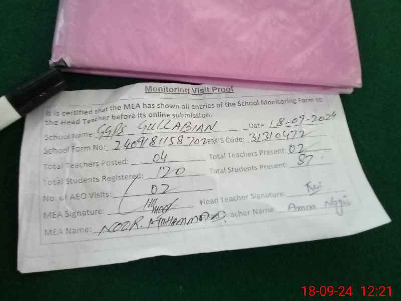 | EMIS Code: 31310472 | Name of School: GGPS GOLABIAN | |||