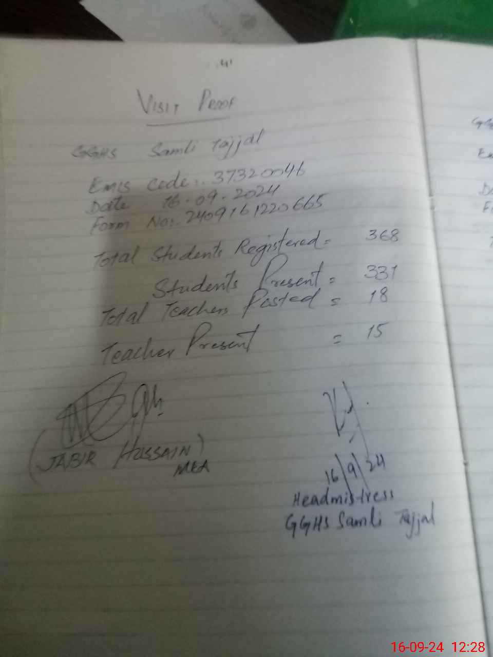 | EMIS Code: 37320046 | Name of School: GGHS SAMLI TAJJAL | |||