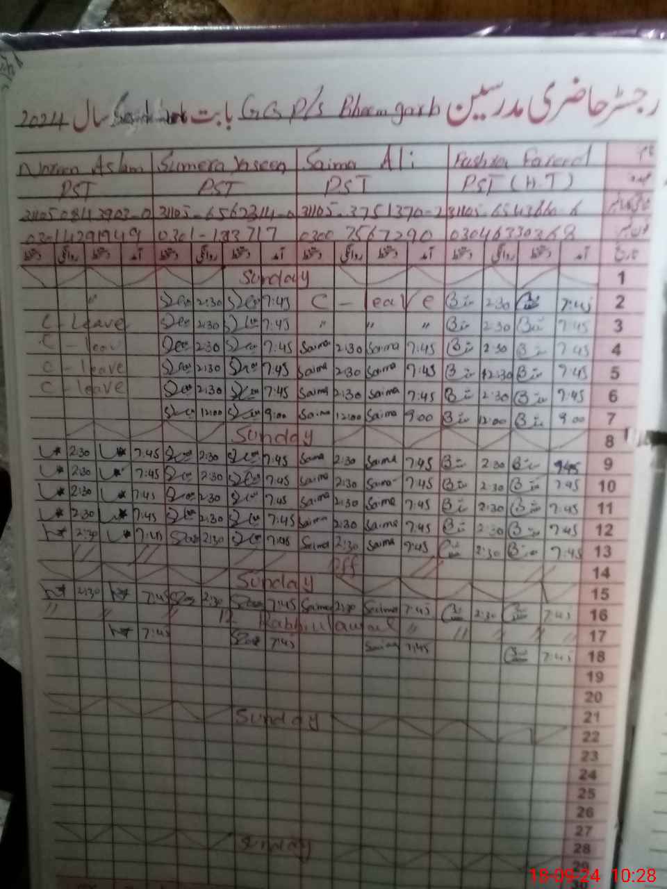 | Name: Bu**** Fa**** Designation: (School Headmaster's/Headmistress's) PST Phone/Cell Number: 03**** |