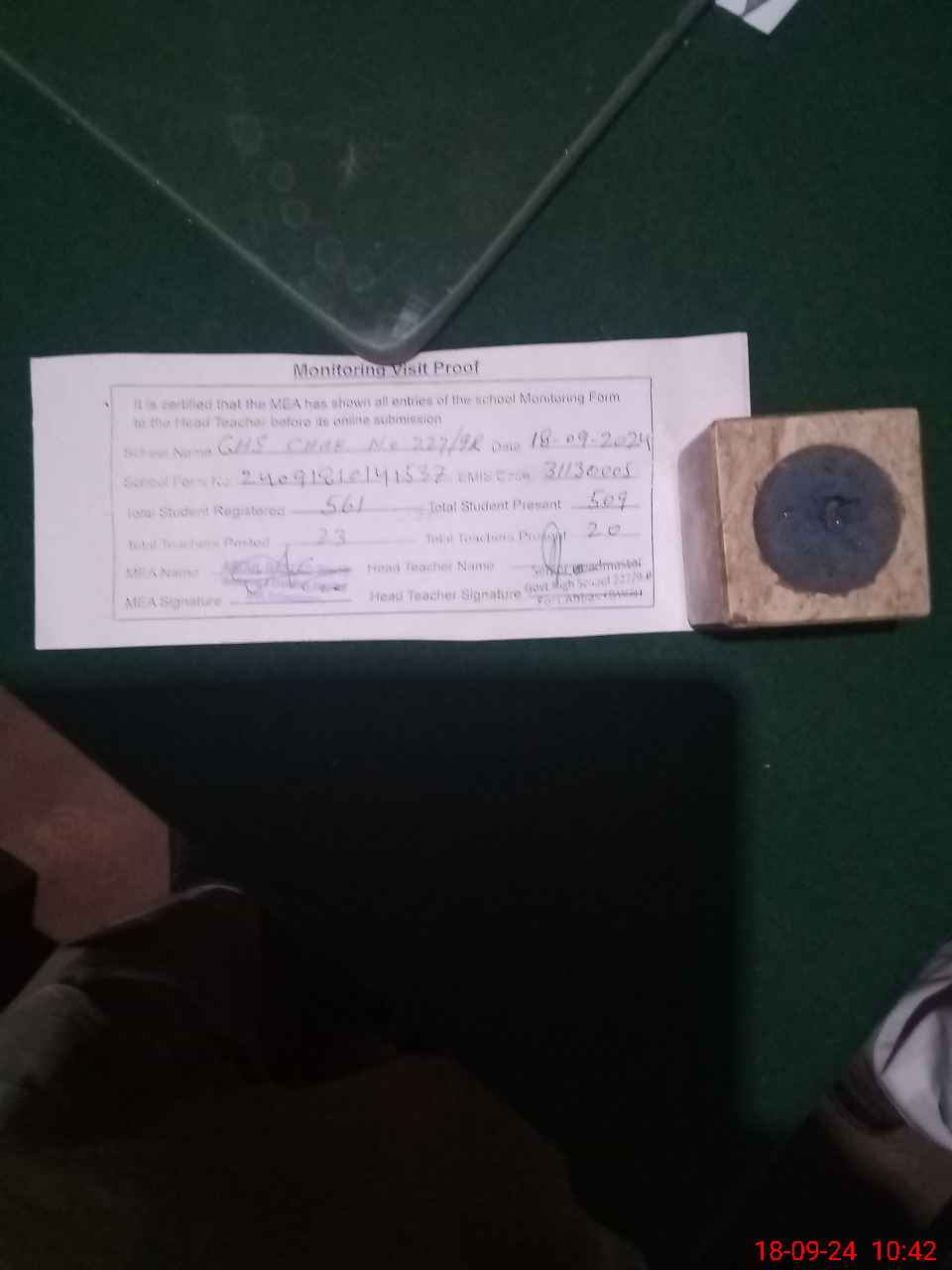 | EMIS Code: 31130005 | Name of School: GHS CHAK 227/9-R | |||