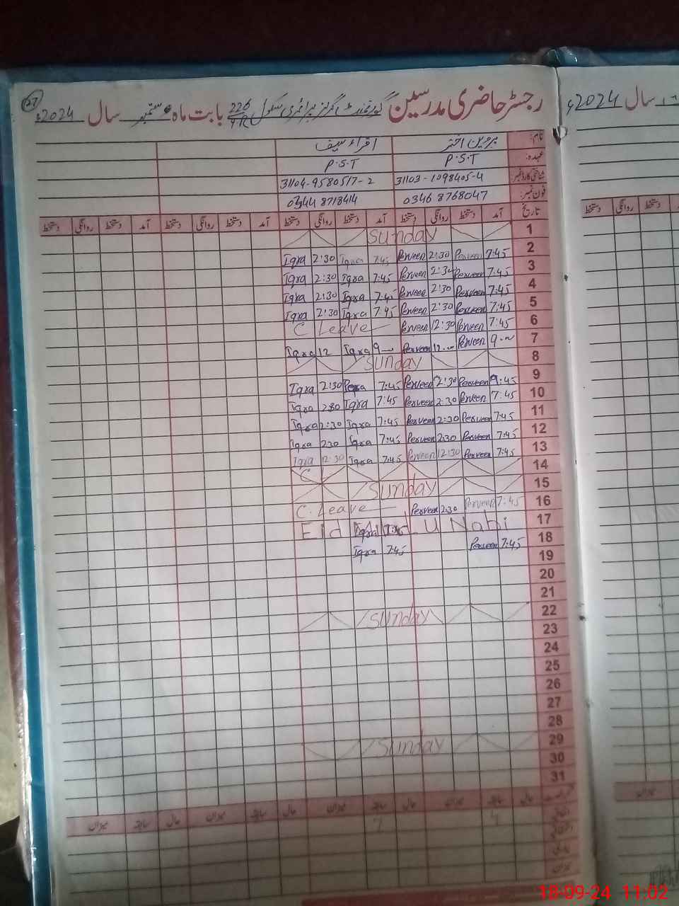| CNIC | Full Name | Designation | R/C | Absence During Last Calender Month |
