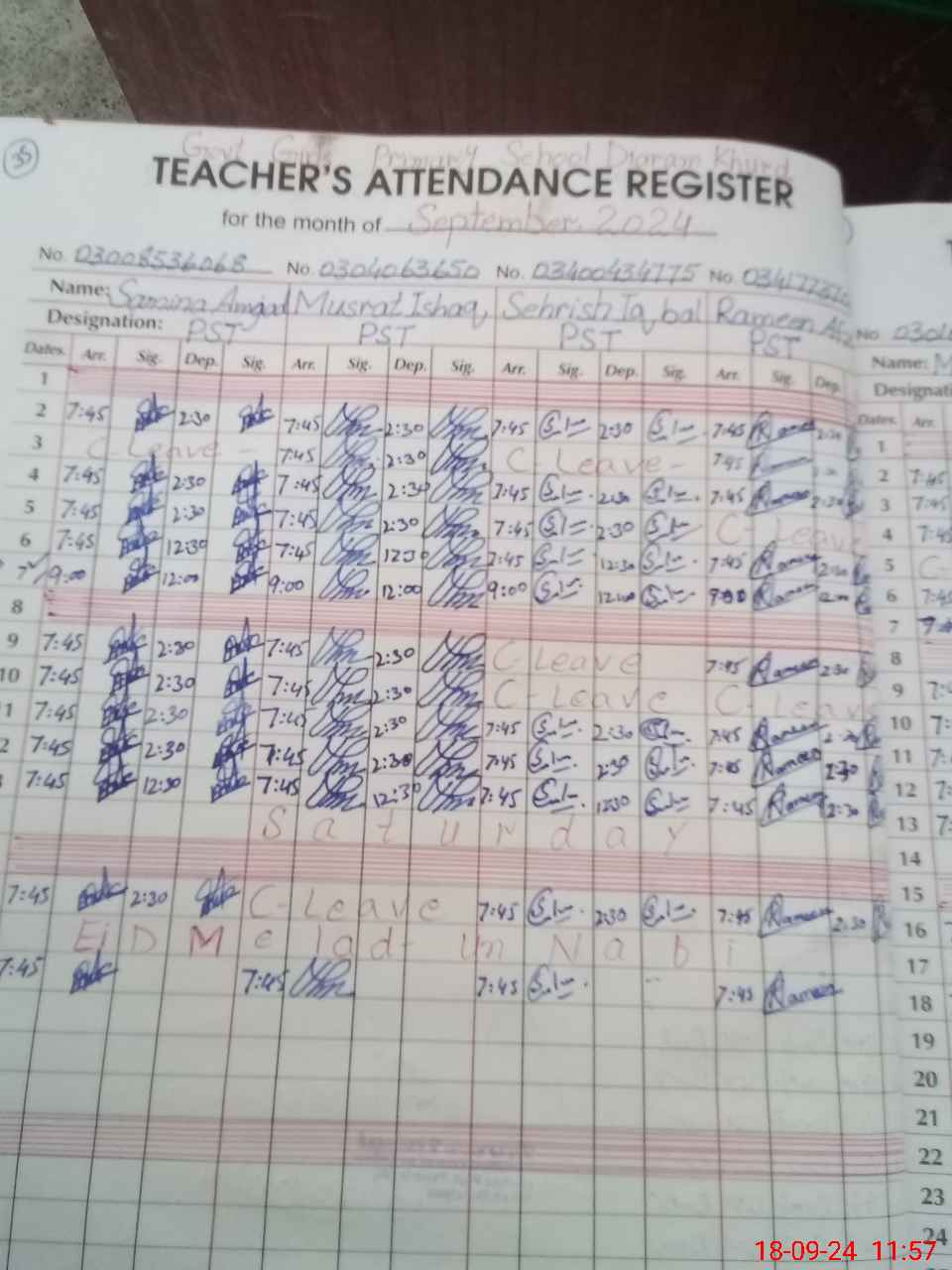 | Name: Sa**** Am**** Designation: (School Headmaster's/Headmistress's) PST Phone/Cell Number: 03**** |