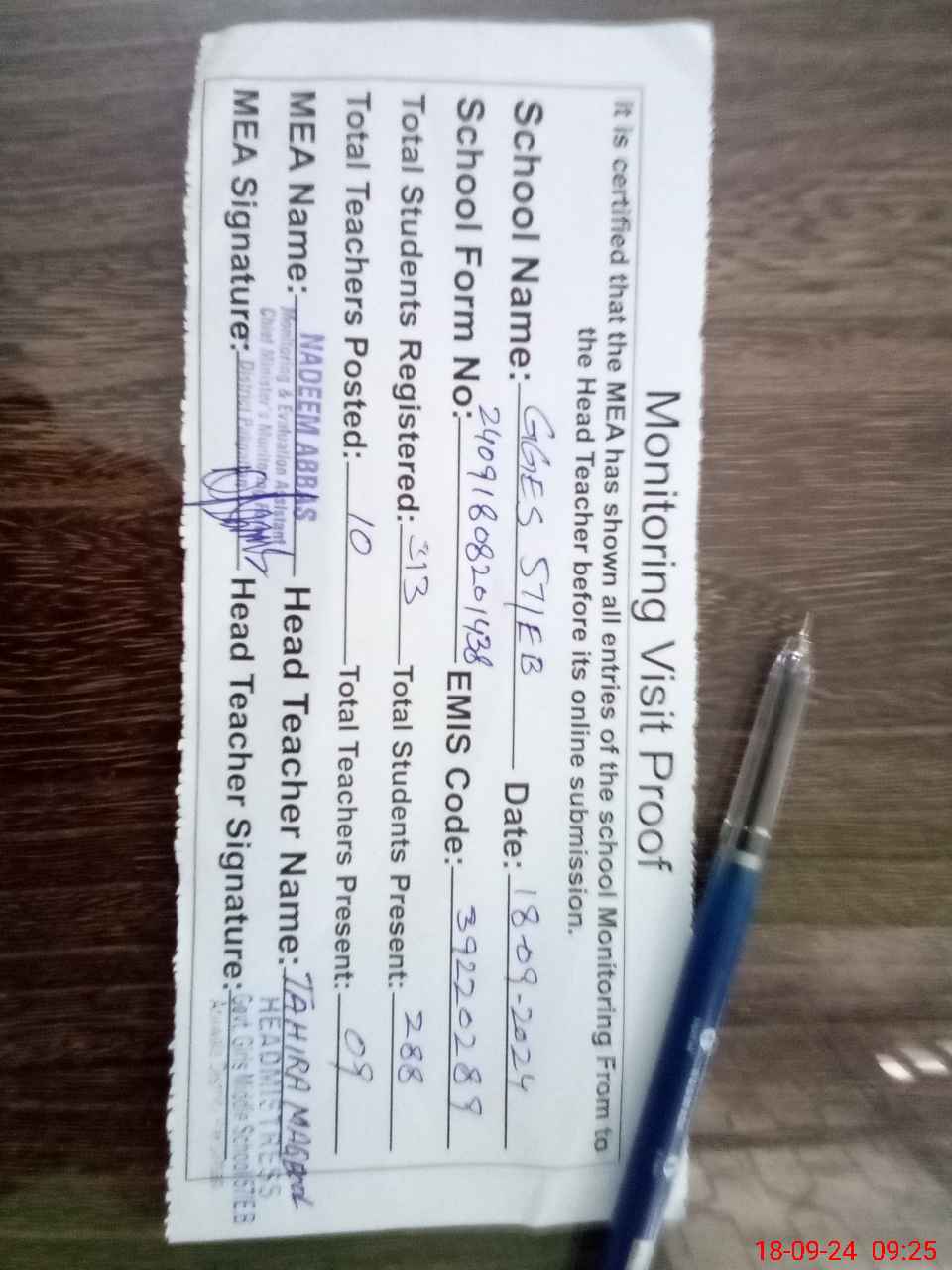 | Certified that this School was Inspected by the Undersigned MEA/DMO Today and the Information Stated Above is as Per Record. | |||||