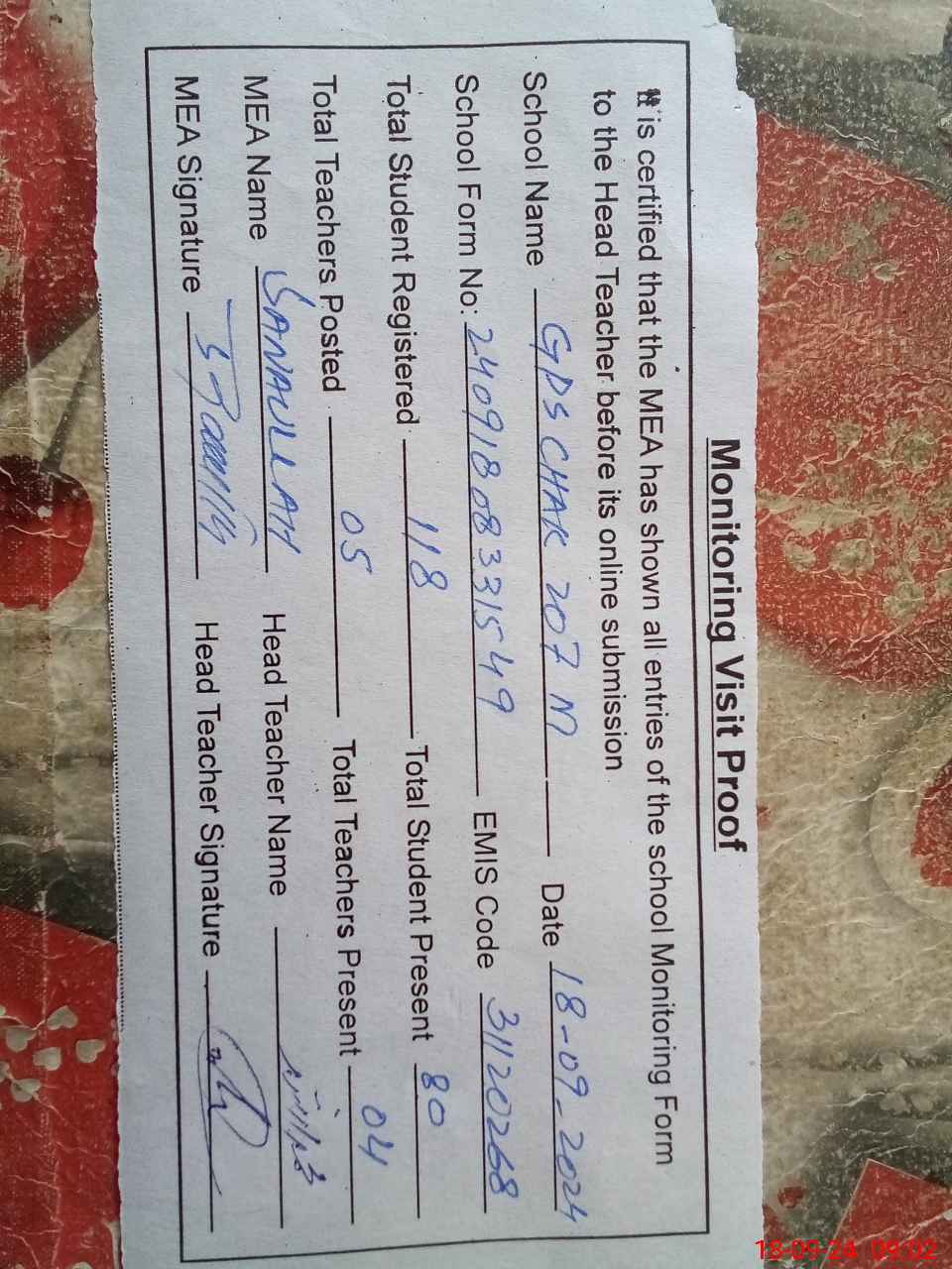 | EMIS Code: 31120268 | Name of School: GPS CHAK NO 207 M | |||