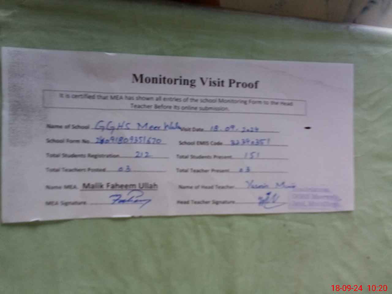 | EMIS Code: 32340351 | Name of School: GGHS MEER WALA | |||