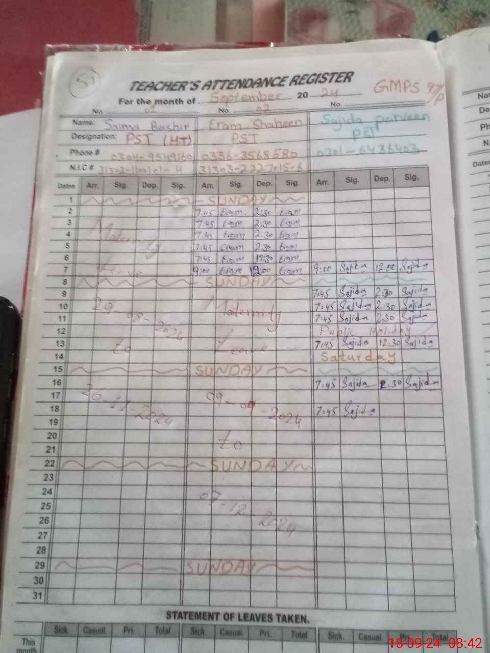 | Name: Sa**** Ba**** Designation: (School Headmaster's/Headmistress's) PST Phone/Cell Number: 03**** |