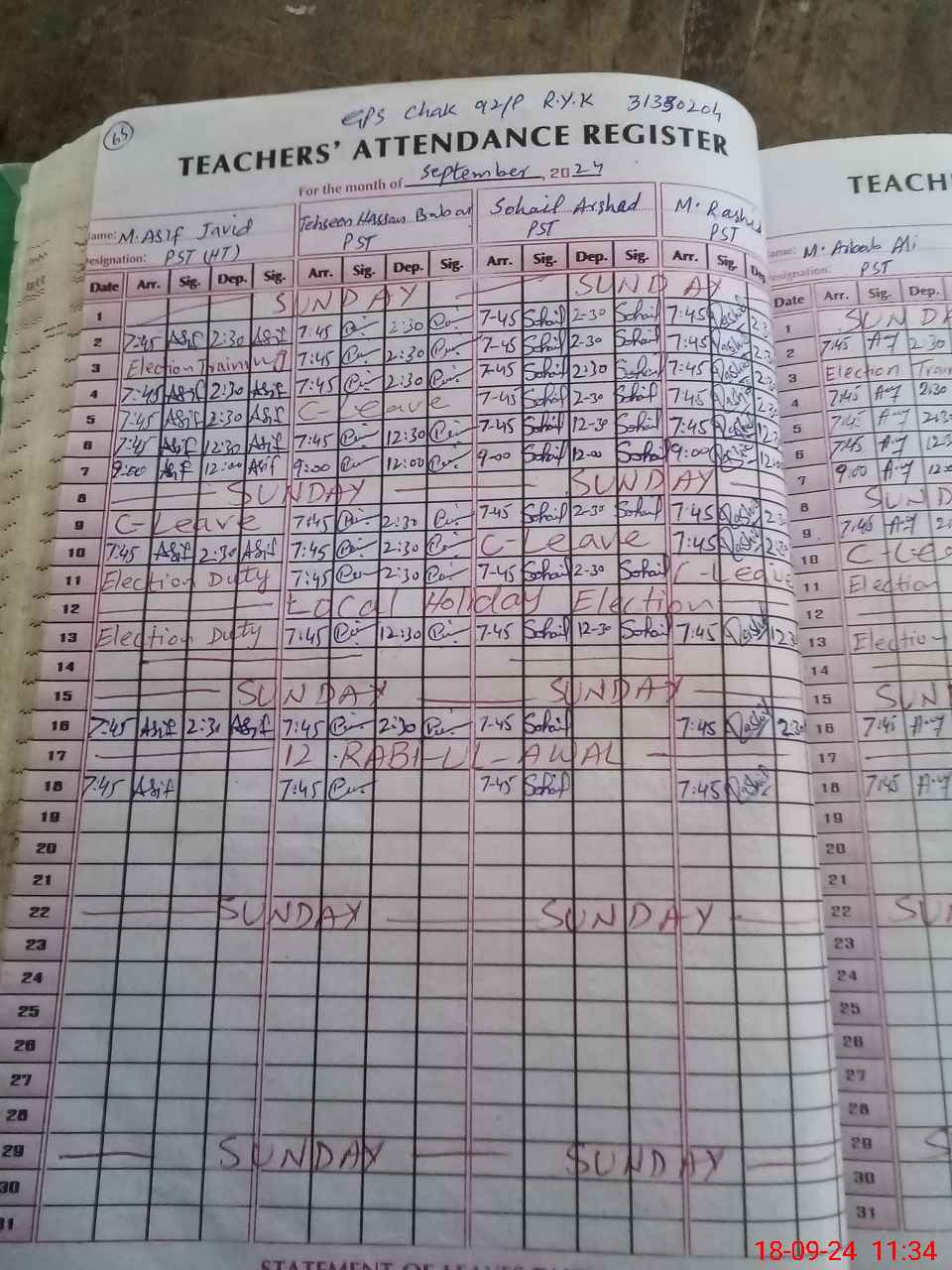 | Name: Ta**** Ha**** Ba**** Designation: (School Headmaster's/Headmistress's) PST Phone/Cell Number: 03**** |