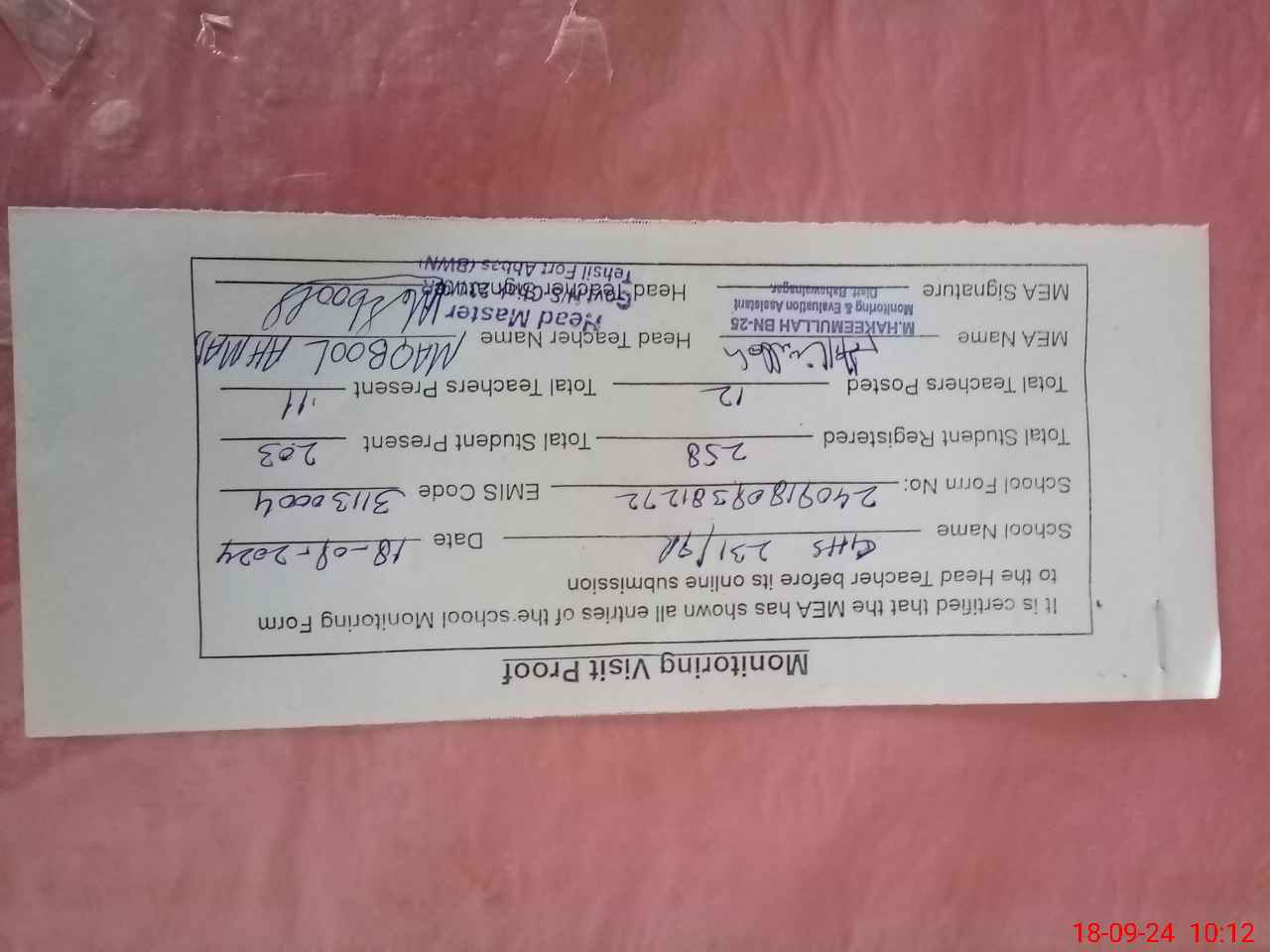 | EMIS Code: 31130004 | Name of School: GHS CHAK 231/9-R | |||