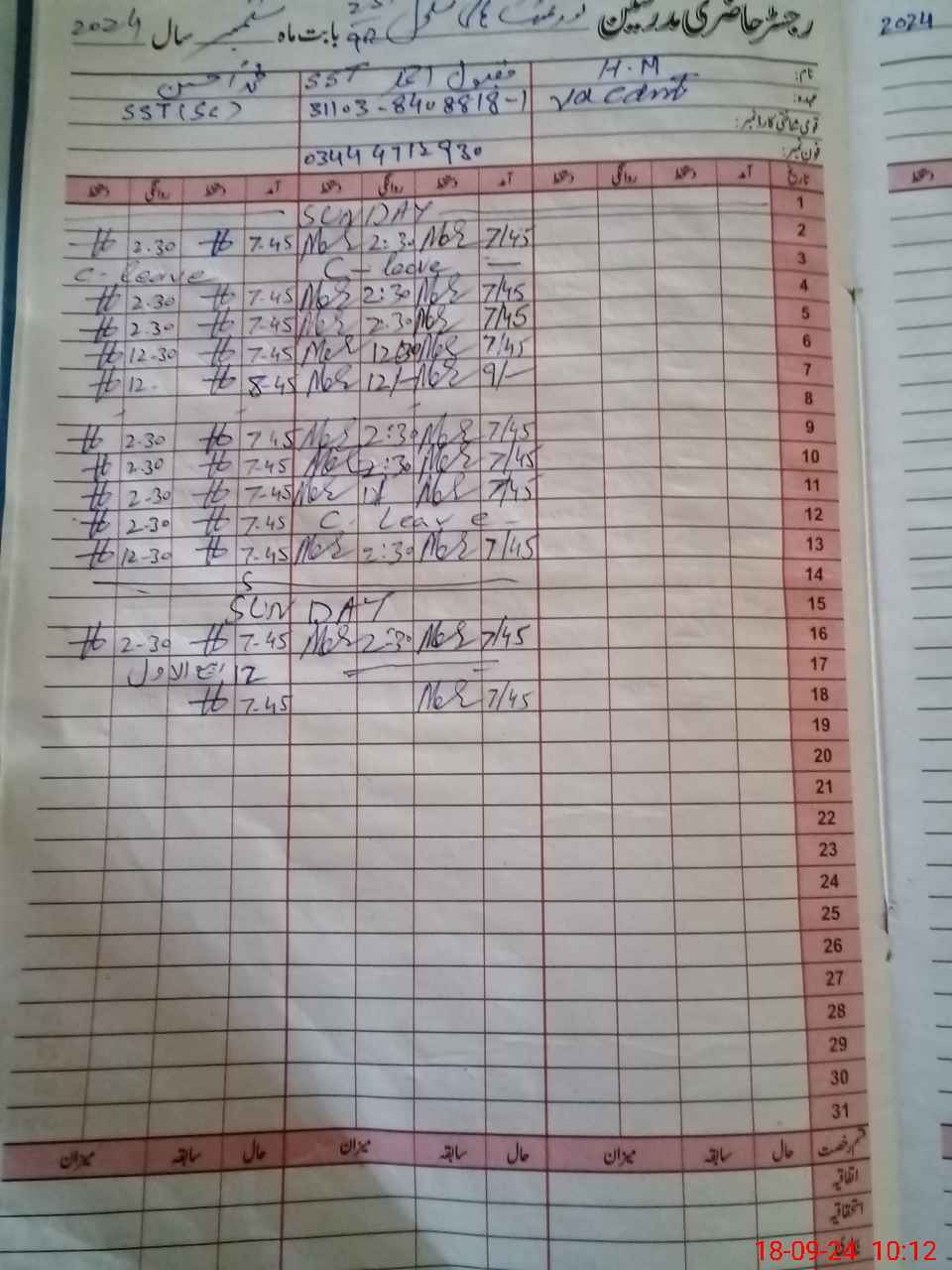 | Name: Mu**** Ah**** Designation: (School Headmaster's/Headmistress's) SST(Sc) Phone/Cell Number: 03**** |
