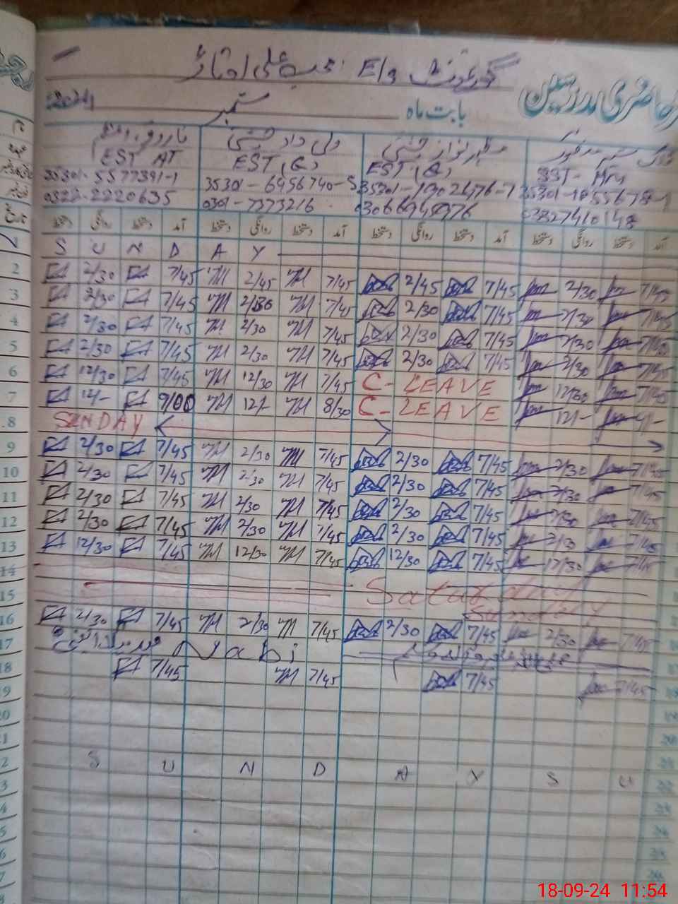 | CNIC | Full Name | Designation | R/C | Absence During Last Calender Month |