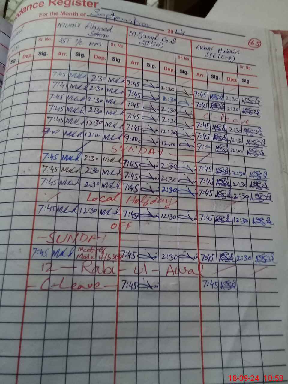 | CNIC | Full Name | Designation | R/C | Absence During Last Calender Month |