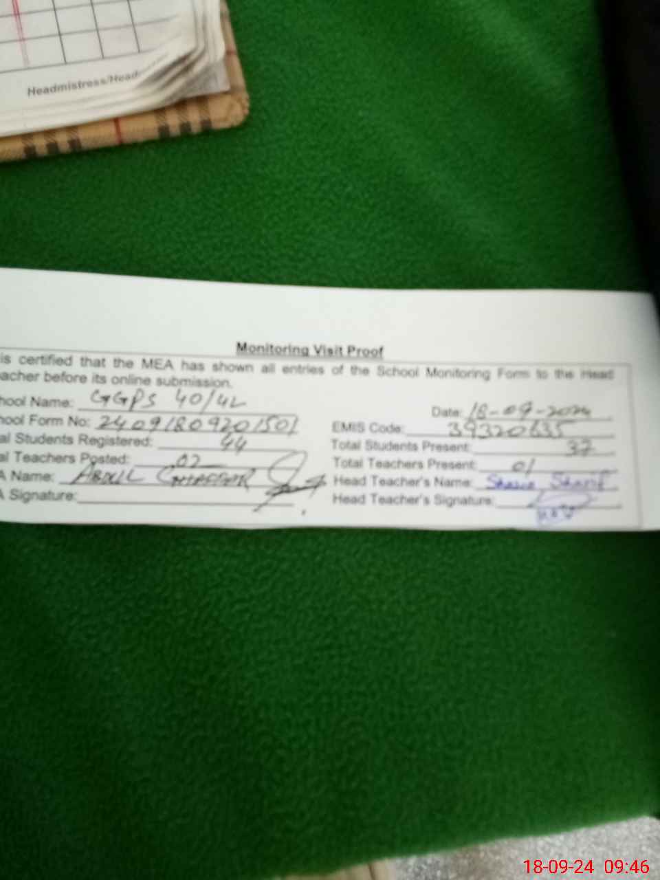 | EMIS Code: 39320635 | Name of School: GGPS CHAK NO. 40/4-L | |||