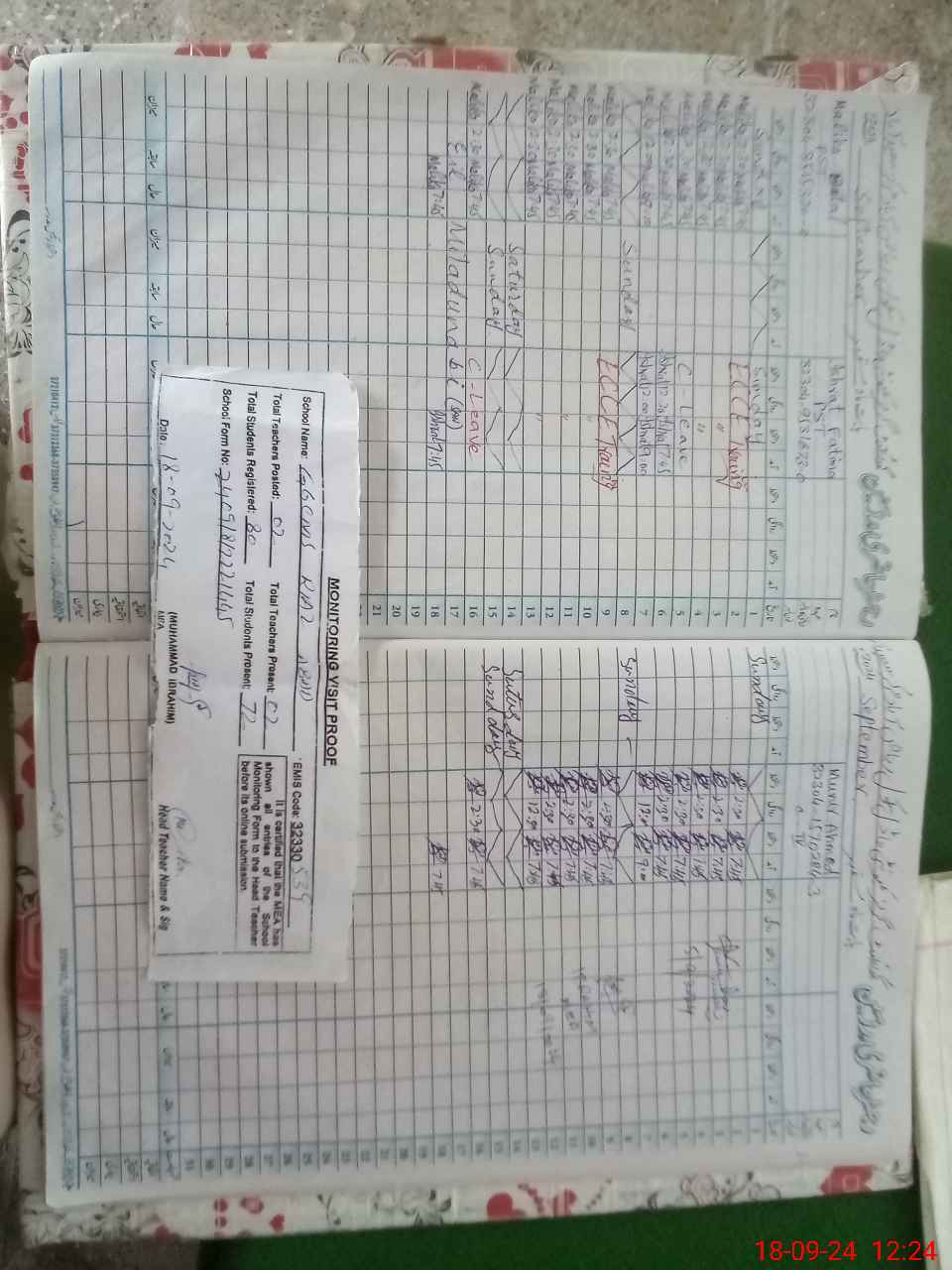 | Attendance Register | Head Teacher | MEA with School | Visit Proof |
