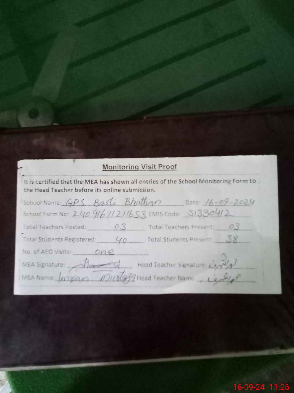| EMIS Code: 31330412 | Name of School: GPS BASTI BHUTTIAN | |||
