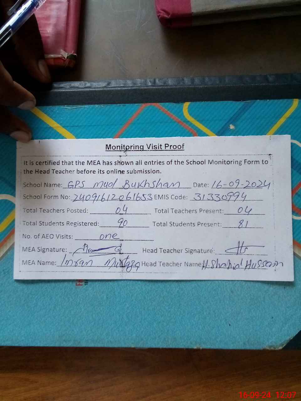| EMIS Code: 31330994 | Name of School: GPS MUD BUKHSHAN | |||