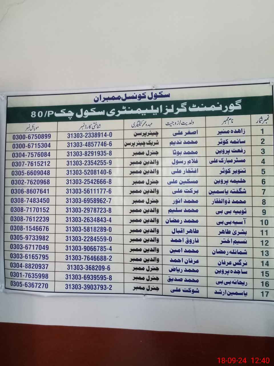 | EMIS Code: 31330748 | Name of School: GGES CHAK 80/P | |||