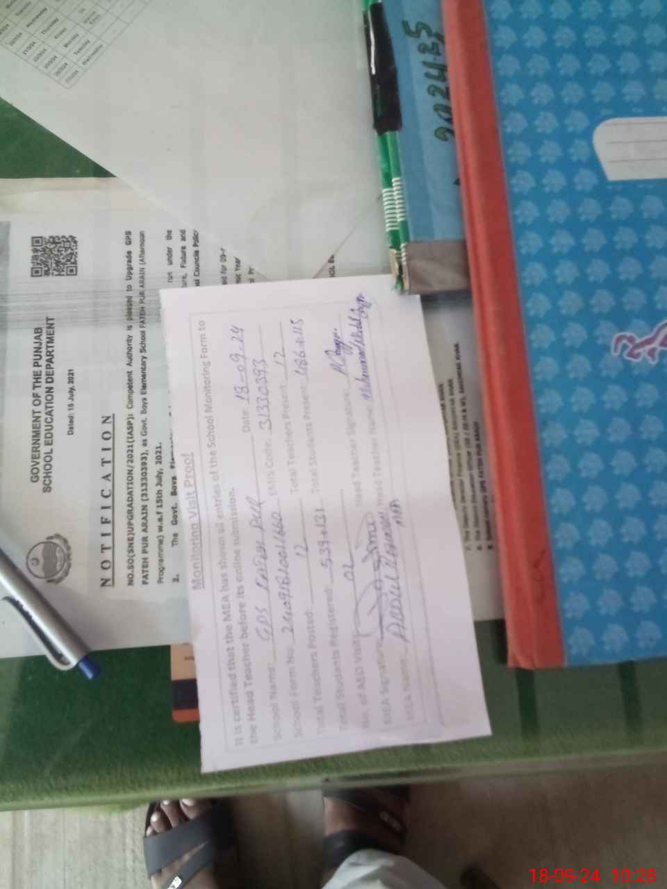 | EMIS Code: 31330393 | Name of School: GPS FATEH PUR ARAIN | |||