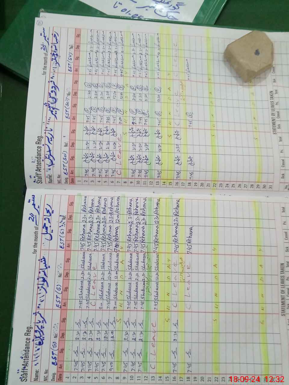 | Leave | Duty | Absent | Maternity | Medical | Ex- Pak |
