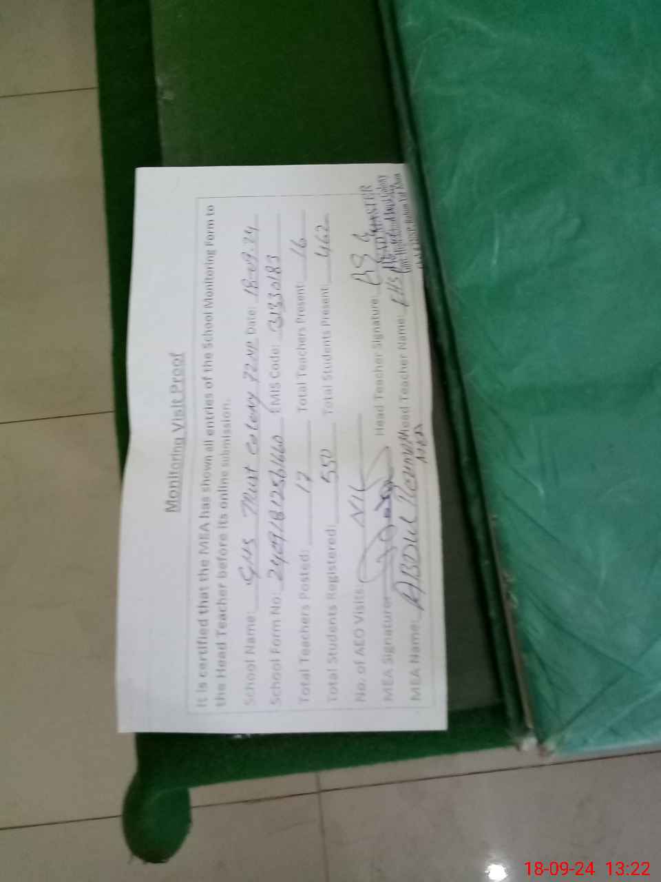 | Certified that this School was Inspected by the Undersigned MEA/DMO Today and the Information Stated Above is as Per Record. | |||||