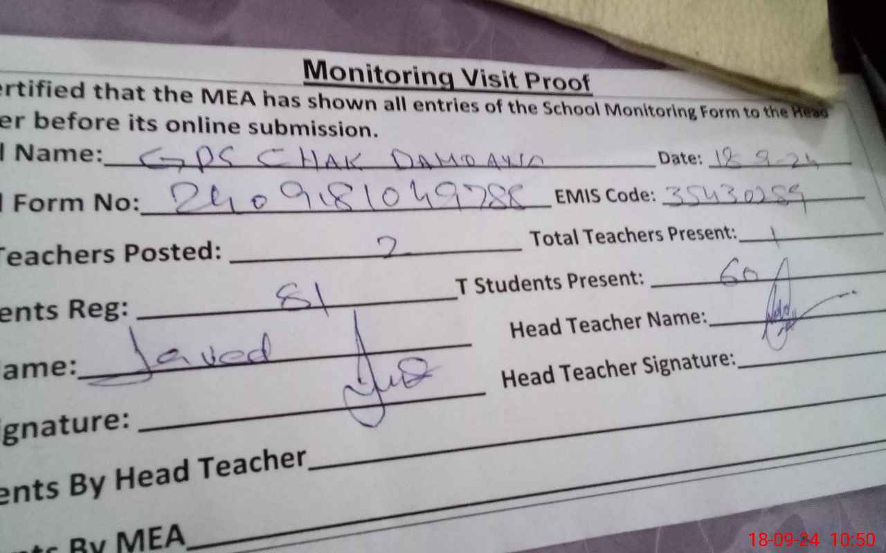 | EMIS Code: 35430289 | Name of School: GPS CHAK DAMOANA | |||