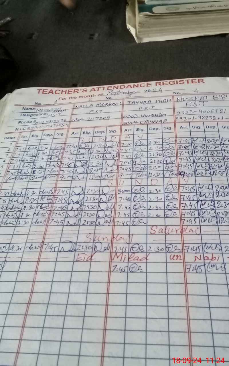 | Name: TA**** KH**** Designation: (School Headmaster's/Headmistress's) PST Phone/Cell Number: 03**** |