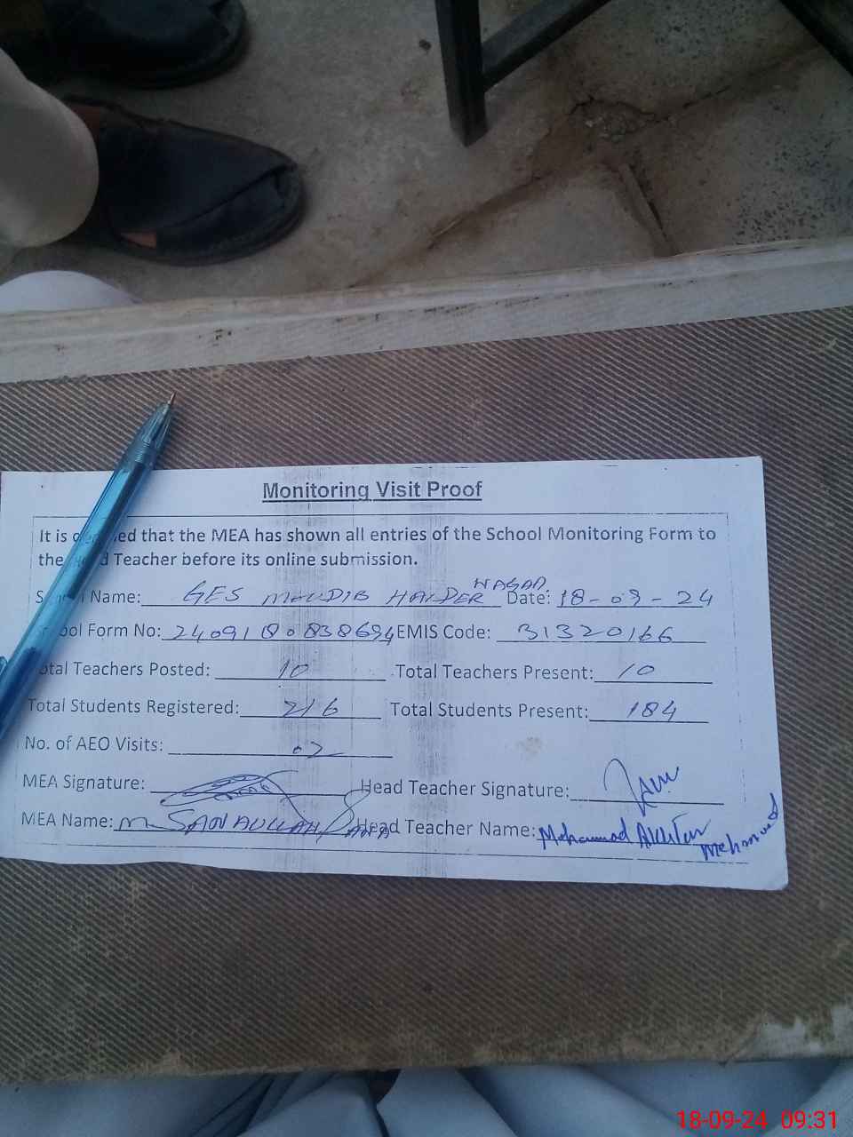 | EMIS Code: 31320166 | Name of School: GES MOADIB HAIDER NAGAR | |||